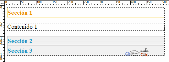 Cuando insertamos un widget de este tipo, de forma predeterminada se insertan tres paneles con la siguiente apariencia: