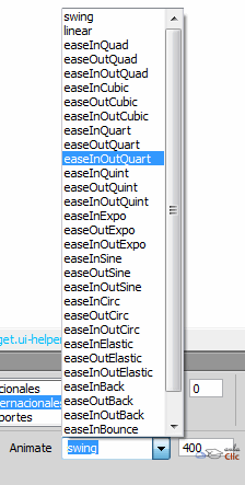 La sección Animate tiene dos controles. La primera es una lista desplegable de todos los efectos de animación por los que se despliega u oculta el acordeón que son posibles. El segundo control nos permite establecer el tiempo en milisegundos que va a durar la animación. Un efecto de un segundo tendrá un valor de 1000.
