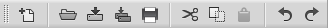 La barra de herramientas estándar contiene iconos para realizar las acciones más habituales del menú Archivo y Edición. De izquierda a derecha: Nuevo archivo, Abrir, Guardar, Guardar todo, Imprimir el código fuente, Cortar, Copiar, Pegar, Deshacer y Rehacer. Esta barra puede ser muy útil, pero en realidad casi todo el mundo usa esos comandos directamente con el teclado (Ctrl + G para guardar, Ctrl + C para copiar, etc.)