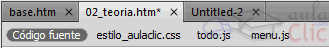 Debajo de las pestañas encontramos los archivos a que utiliza nuestra página, como la hoja de estilos, archivos JavaScript, etc... pudiendo acceder a ellos con un clic. Esto nos ahorrará bastante tiempo.