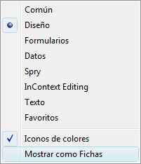 Para alternar estos aspectos, hacemos clic derecho sobre el nombre en el menú y seleccionamos la opción Mostrar como Fichas o Mostrar como menú, según el caso.![]()