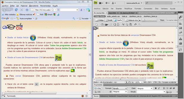 Aquí te explicaremos cómo conseguir tener la pantalla dividida en dos partes, una con el curso y otra con Dreamweaver CS4.