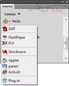 SWF que aparece al desplegar el menú Media.