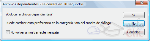 Si la carpeta local y la carpeta del servidor de pruebas no es la misma, debemos de decir que Sí, para que Dreamweaver copie los archivos necesarios al servidor. En nuestro caso, como es la misma carpeta, podemos decir que No.