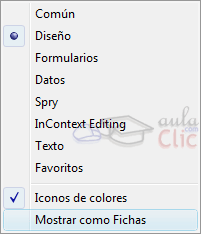 Para alternar estos aspectos, hacemos clic derecho sobre el nombre en el menú y seleccionamos la opción Mostrar como Fichas o Mostrar como menú, según el caso.![]()