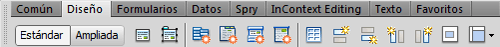 Es posible cambiar el aspecto del panel. Como ya hemos dicho, podemos arrastrarlo hasta la barra de menús para que tome un aspecto de fichas, como se aprecia en la siguiente imagen: