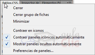Para cerrar un panel, basta con hacer clic derecho sobre su pestaña y elegir Cerrar del menú.