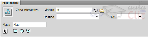 Al estar seleccionado un mapa el inspector de propiedades cambia. Permite asignar un vínculo y un texto alternativo a ese mapa como puedes ver a continuación: