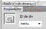 - Si te fijas en la barra de estado, verás una etiqueta <div>. Haz clic sobre ella.