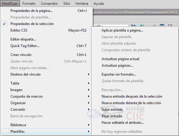 Una vez abierto el documento, hay que dirigirse al menú Modificar, Plantillas, opción Aplicar plantilla a página.