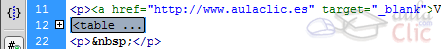 Por ejemplo, podemos seleccionar el trozo de código correspondiente a una tabla, como se ve en la siguiente imagen, aunque podemos seleccionar cualquier código: