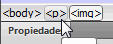 Vamos a centrar también la imagen. Para ellos selecciónala. Lo que hay que centrar es el contenido del párrafo que la contiene. Para hacerlo, en la barra de estado, encima de las propiedades nos aparece la jerarquía de etiquetas. Haz clic sobre p. ![]()