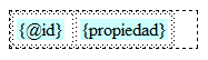 Desde el código fuente, resulta muy sencillo introducir estos elementos. Basta con seguir la estructura {nombreDataSet::nombrePropiedad} para las propiedades o {nombreDataSet::@nombreAtributo} para los atributos.