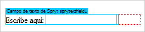 El objeto de campo de texto es exactamente igual al que vimos en la unidad de formularios. Haciendo clic en la etiqueta azul Campo de texto de Spry podrás ver las opciones de validación en el panel Propiedades: