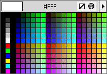 Para asignar colores es posible desplegar una paleta de colores como ésta. Al seleccionar un color de estas paletas, se muestra el valor hexadecimal del color en la parte superior.
