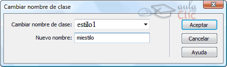 También se puede cambiar el nombre del estilo, es mejor que el estilo tenga un nombre que indique a qué tipo de texto se va a aplicar. Para ello accedemos al panel Estilos, hacemos clic con el botón derecho sobre el estilo y seleccionamos la opción Cambiar nombre... Aparecerá un cuadro de diálogo para que introduzcamos el nuevo nombre como la imagen inferior.