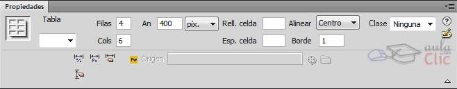Las propiedades de la tabla se especifican a través de su inspector de propiedades. En este caso, se crearán atributos para la tabla. Pero algunos de estos valores, como el ancho, los podemos especificar mediante CSS.