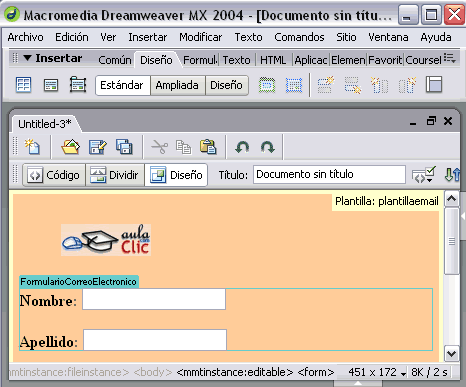 | En este caso no es posible cambiar el color de fondo, que está definido en la plantilla, pero sí es posible cambiar todos los elementos de la tabla y el formulario, ya que se encuentran dentro de una zona definida en la plantilla como editable. En este caso se podría cambiar el estilo del texto, el color de las celdas, combinarlas, etc. Para que una página deje de estar basada en una plantilla hay que dirigirse al menú Modificar, Plantillas, opción Separar de plantilla. Cuando se separa una página de una plantilla, el contenido de la página sigue siendo el mismo que el que tenía cuando aún estaba basada en la plantilla, pero sin las restricciones establecidas por la plantilla.