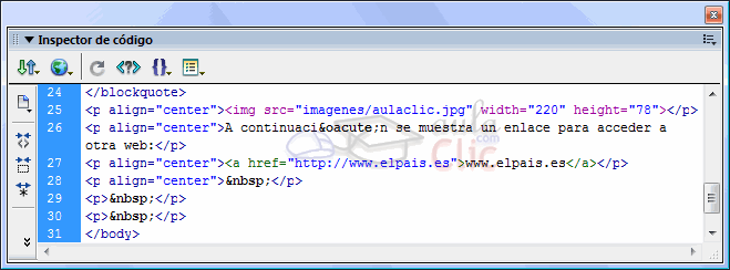 El Inspector de código muestra el código HTML de la misma forma que lo hacen la vista Código y la vista Dividir (Código y Diseño), pero puede resultar más cómodo trabajar con el panel, ya que puede situarse en cualquier parte de la pantalla, y no se limita sólo al espacio del documento.