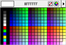 | Para asignar colores es posible desplegar una paleta de colores como ésta. Al seleccionar un color de estas paletas, se muestra el valor hexadecimal del color en la parte superior. Las paletas de colores de Dreamweaver utilizan la paleta de 216 colores seguros para web. Éstos son los colores que se muestran de la misma forma en Microsoft Internet Explorer y en Netscape Navigator, tanto en Windows como en Macintosh. También es posible personalizar los
