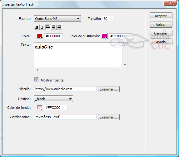 En la nueva ventana pueden especificarse