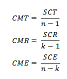 Luego, dividiendo cada suma de cuadrados entre sus respectivos grados de libertad tendremos los cuadrados medios que constituyen las varianzas respectivas.