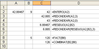 | =Entero(A2) | Devuelve la parte entera de A2, truncando la parte