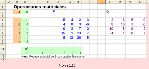 | Nota importante: Para ejecutar una operación matricial debe presionar [Ctrl]+SHIFT]+[ENTER] En cada caso seleccionar el rango de celdas que recibirá el resultado de la operación.