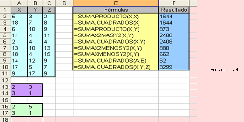 Devuelve la suma de los cuadrados de cada uno de los argumentos. Estos pueden ser valores, celdas con valores numéricos o matrices.