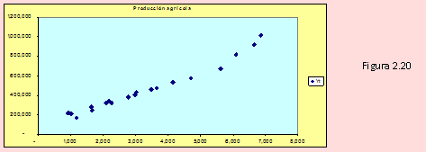 a) Construiremos un gráfico de dispersión de la variable: Producción agrícola vs Volumen de fitosanitarios usando MS Excel 2003.