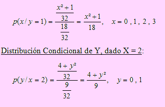 Distribución Marginal de Y: p(y) = (14 + 4y2) / 32; y = 0, 1.
