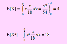 Como para hallar la esperanza y varianza de Y se requiere conocer previamente la esperanza y varianza de X, hallaremos primero estos valores: Según los datos f(x) = x/18, 0 ≤ x ≤ 6.