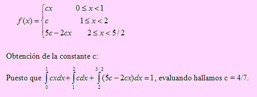 Una estación de gasolina recibe provisión semanalmente. Los datos recogidos en épocas pasadas sugieren que la función de densidad de probabilidad de las ventas semanales, X, medidas en miles de galones, se aproxima a la función cuya gráfica se muestra en la siguiente figura: