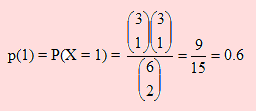 Analicemos el caso X = 1. Se trata de elegir una mujer dentro de un total de 3, y un hombre dentro de un total de 3 hombres. La probabilidad de que esto ocurra es