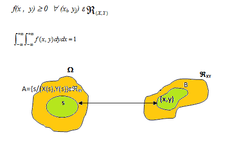 Puesto que en la definición (X, Y) es una función que permite asignar valores (x,y) reales a elementos s del espacio muestral Ω entonces podemos definir la existencia de un evento A ⊆ Ω para el cual exista un evento B ⊆ ℜ(X, Y), tales que B = {(x,y) / (x,y) ∈ℜ(X, Y) } donde A = {s / (X(s), Y(s) ) ∈ B }. Según esto, los eventos A y B son eventos equivalentes.