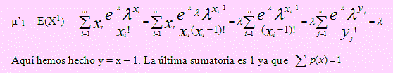 Usando el mismo procedimiento podríamos hallar el momento de orden 2 de esta variable y encontraríamos que E(X2 ) = λ2 + λ.