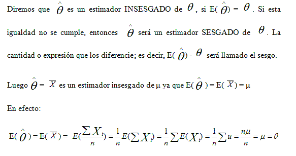 Para que sea un estimador de , debe poseer por lo menos una de las siguientes propiedades.