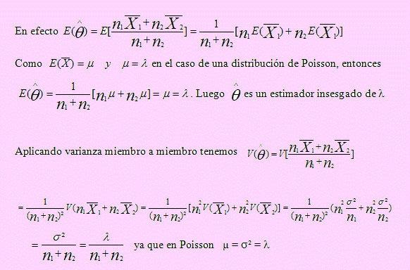b) Pruebe que la varianza de este estimador es igual a λ /(n1 + n2 ).