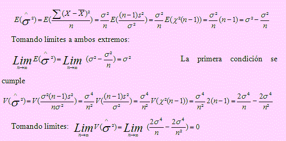 Como la segunda condición también se cumple, entonces s2 es un estimador consistente de σ2.
