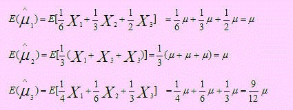Sea X1, X2, X3 una muestra aleatoria de cualquier población con μ y σ2 = 1. De los siguientes estimadores de μ: