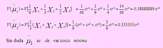 Los dos primeros son insesgados; por tanto calcularemos la varianza sólo de los que son insesgados: