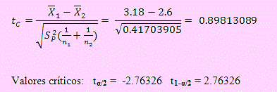 Según esto, el estadístico de la prueba usando varianzas desconocidas pero iguales.