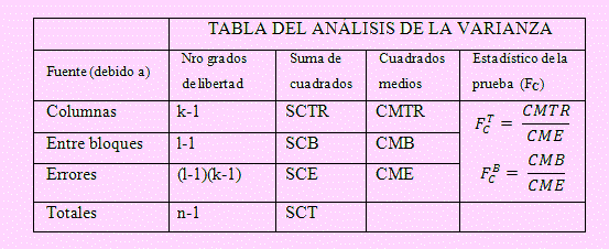 SiFC >Fα (k-1,n(k-1)(l-1))se rechazará la hipótesis nula.