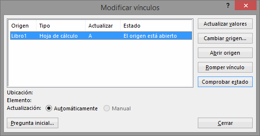 Pregunta inicial: Podemos incluir una advertencia al abrir el libro dependiente, indicando que tenemos enlaces externos.