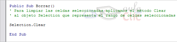 código dentro del procedimiento; los comentarios en verde son opcionales.