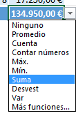 Al seleccionar una celda de la fila de totales, aparece una pestaña con una lista de las funciones que podemos usar para calcular el total de esa columna.