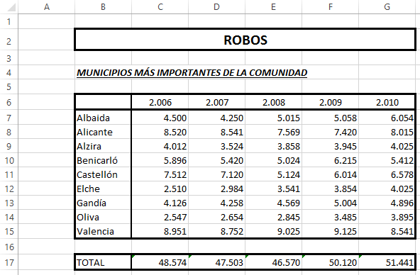 1. Abrir el libro de trabajo Robos de la carpeta Mis documentos del disco duro.