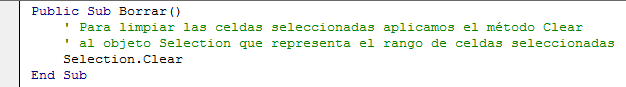 código dentro del procedimiento; los comentarios en verde son opcionales.