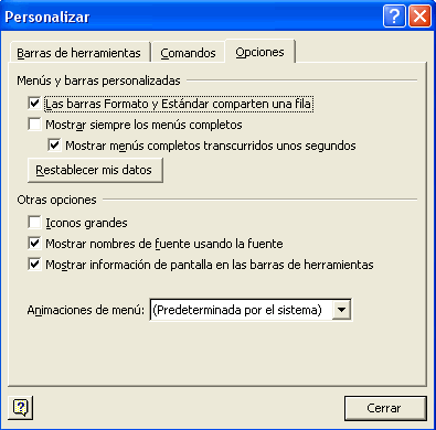cuando abrimos Excel2002 los menús contienen