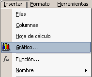 Al hacer clic, aparece una ventana o cuadro de diálogo en el que nos pedirá que rellenemos algunos datos y que tendrá botones para aceptar o cancelar la acción. Se distinguen porque el nombre acaba en puntos suspensivos. Por ejemplo, en el menú Insertar, Gráfico... |